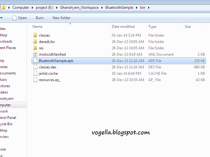 Step 3, You will found same name project name with .APK file. Ex, You can see apk file with name bluetoothsample.apk file.